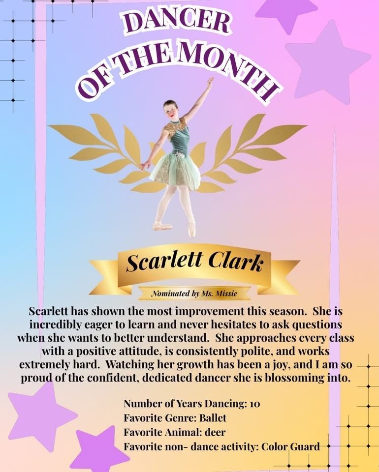 Join us in congratulating Scarlett, our December Dancer of the Month! We can't wait to keep watching you shine!